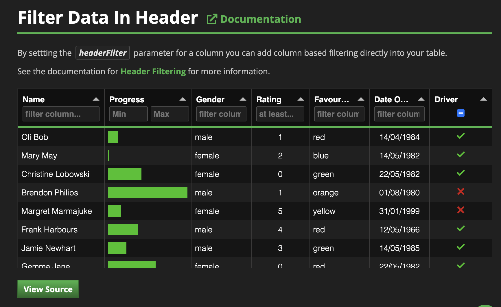 I’ve been pouring over the Tabulator documentation this evening trying to figure out how to do live range filtering of a numeric column. I have an integer column in my data table that I’d like to subset down to rows where in the integer value falls within a specified range.